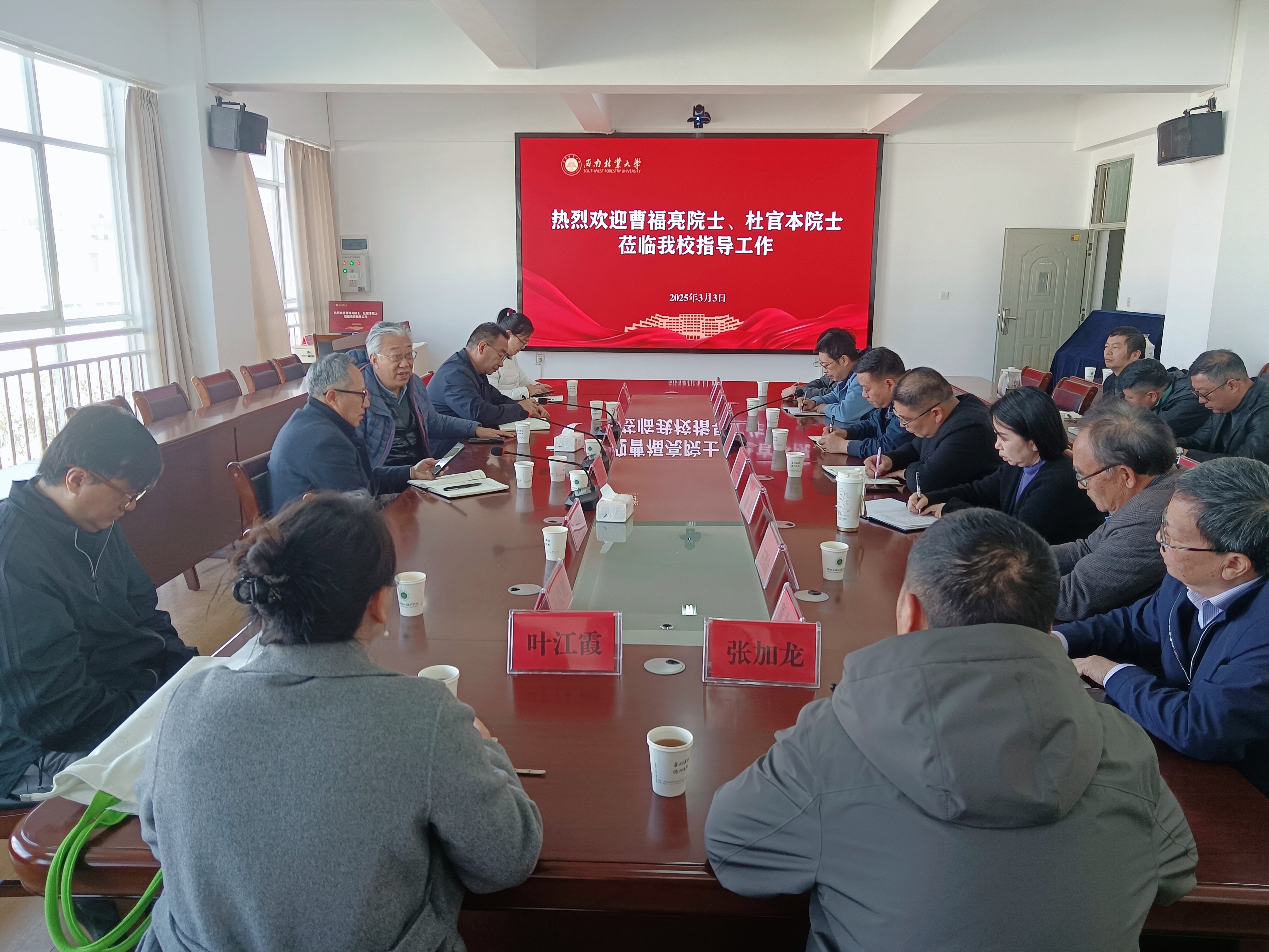 会上,张大才向曹福亮、杜官本汇报了122cc太阳成集团团队建设、专业发展及科研工作等基本情况。听取汇报后,曹福亮院士从“双一流”团队建设、团队队伍建设、科研团队建设等方面提出意见建议。他指出,要在深化办学特色、发挥传统学科优势基础上,进一步加强顶层设计,抓好资源统筹,在人才引进与培养、科研平台及团队组建、标志性成果培育、核心技术攻关、强化校际合作、完善制度保障等方面精准发力,多措并举,持续激发林学优势学科发展新活力,以学科内涵式高质量发展推动学校更好更快服务国家战略和云南地方经济发展,不断提升学校知名度和影响力。