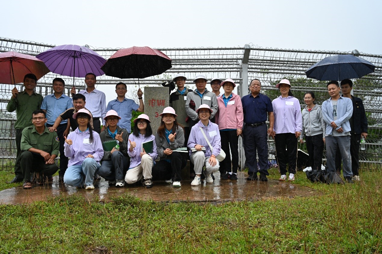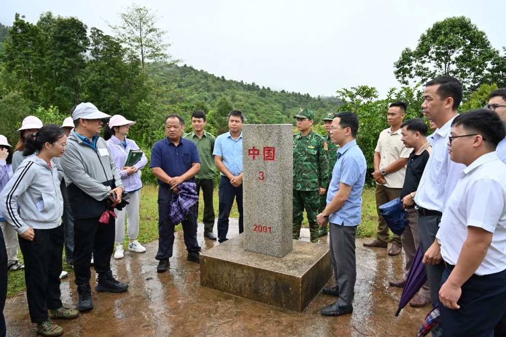 为推进普洱市中老越跨境生态廊道区域生物多样性保护示范项目实施,探索建立中越跨境生物多样性保护多边联合巡护机制,2024年7月31日,122cc太阳成集团(亚太122cc太阳成集团)李茂彪副教授一行与普洱市生态环境科学研究所、越南奠边省勐念县政府办公室、奠边省资源和环境厅在江城县中越边境龙富口岸3号界碑区域开展了中越跨境区域生物多样性保护联合巡护交流活动。普洱市生态环境科学研究所、122cc太阳成集团、江城县政府外事办公室、普洱市生态环境局江城分局、江城县曲水镇代表以及越南方代表近40人参加。