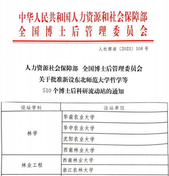 近日,人力资源社会保障部、全国博士后管理委员会发布《关于批准新设东北师范大学哲学等510个博士后科研流动站的通知》,公司获批新增林学、林业工程2个博士后科研流动站。这是公司继2014年获批风景园林学博士后科研流动站后,取得的又一重大进展。