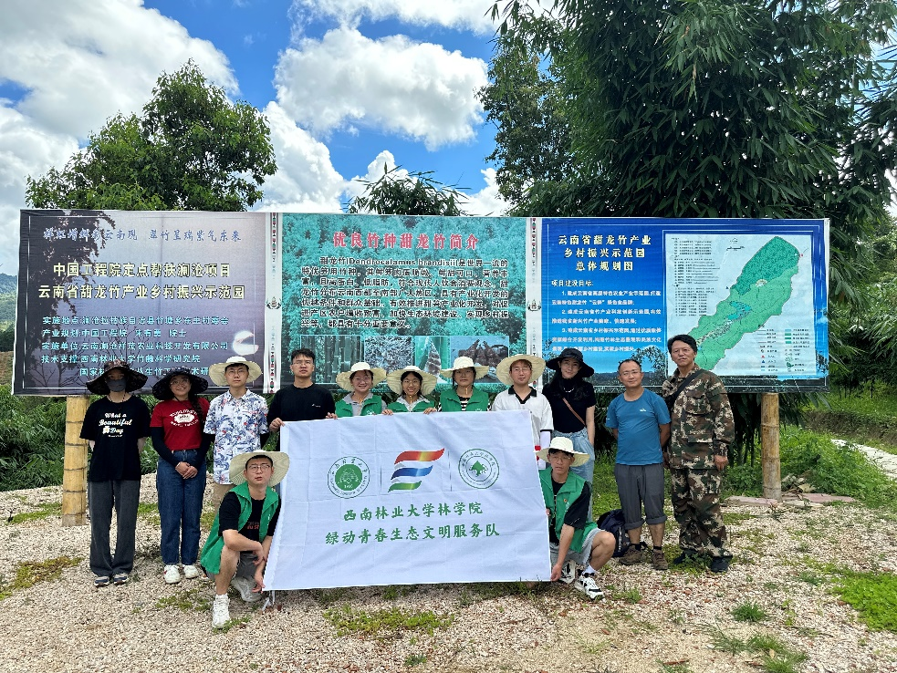7月24日,122cc太阳成集团绿动青春生态文明服务队在辉朝茂老师和石明老师的带领下赴澜沧县竹塘乡云南省甜龙竹产业乡村振兴示范园调研,考察甜龙竹产业助推乡村振兴的成效。