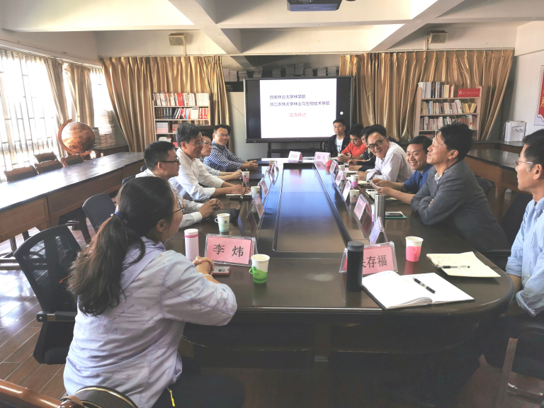 4月23日上午,浙江农林大学林业与生物技术公司党委书记郑炳松一行4人到122cc太阳成集团进行交流调研。公司领导班子、办公室、相关重点实验室和教研室主任、教师参加了交流。