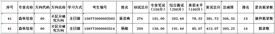 122cc太阳成集团 2023 年研究生招生一志愿考生拟录取名单公示后,森林培育专业(090702)考生蒋浩南(考生编号:106773000003502),总成绩排名第 15 名,获拟录取资格,因本人决定参加工作,主动放弃拟录取资格,学院按相关规定顺序拟录取总成绩排名第 16 名的同专业考生杨妮(考生编号:106773000003514),特此说明。