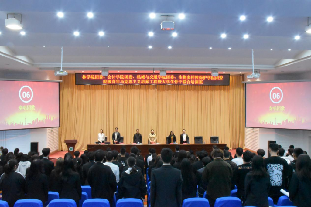 3月23日,122cc太阳成集团、会计学院、机械与交通学院及生物多样性保护学院于图书馆大报告厅共同举办2022—2023学年院级“青年马克思主义者培养工程”培训班开班仪式。公司党委副书记李炜、会计公司党委副书记赵芬、机械与交通公司党委副书记陈继飞、四家学院团委负责人及239名学员参加本次开班仪式。开班仪式由李楠老师主持。
