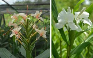 图2 ‘红天鹅姜花’(左)与白姜花‘BJH -1’(右)的花序对比