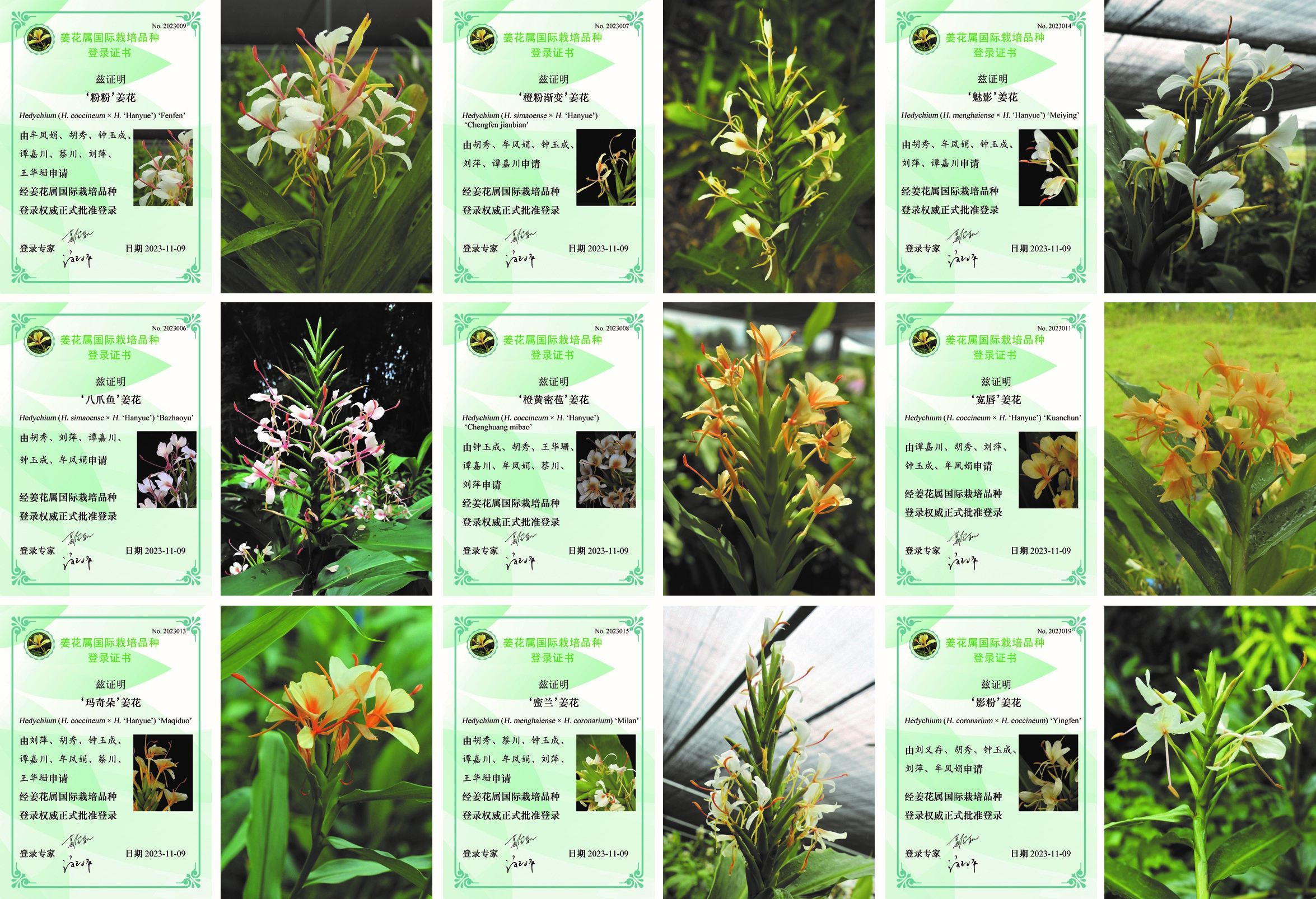 图1 团队选育和参与选育的9个国际登录姜花品种