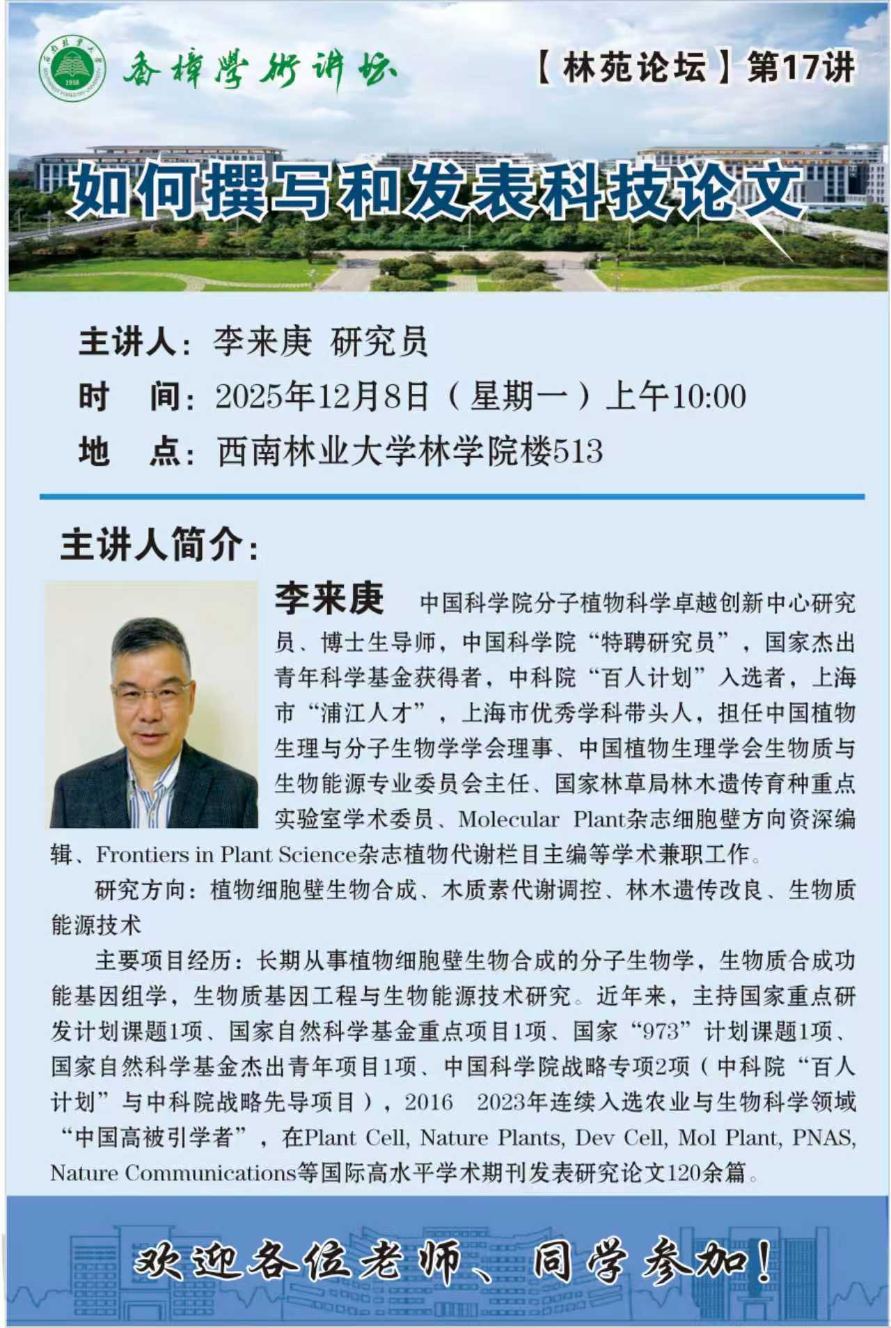 下一条:【林苑论坛】第14讲:中文林业科技论文撰写与发表指南