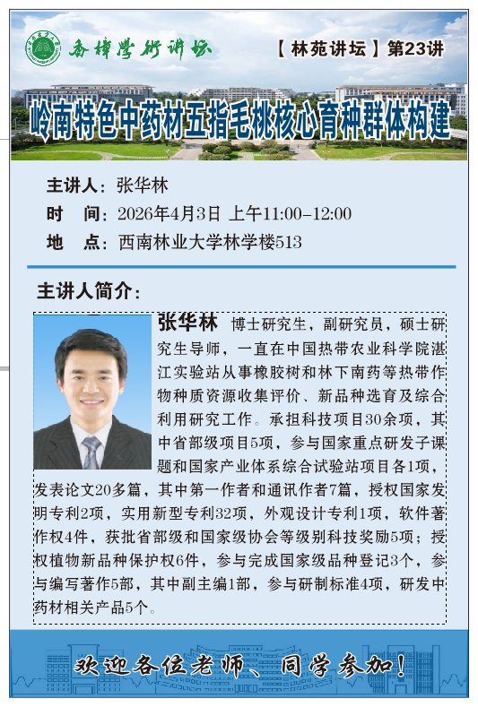 【林苑论坛】第23讲:岭南特色中药材五指毛桃核心育种群体构建