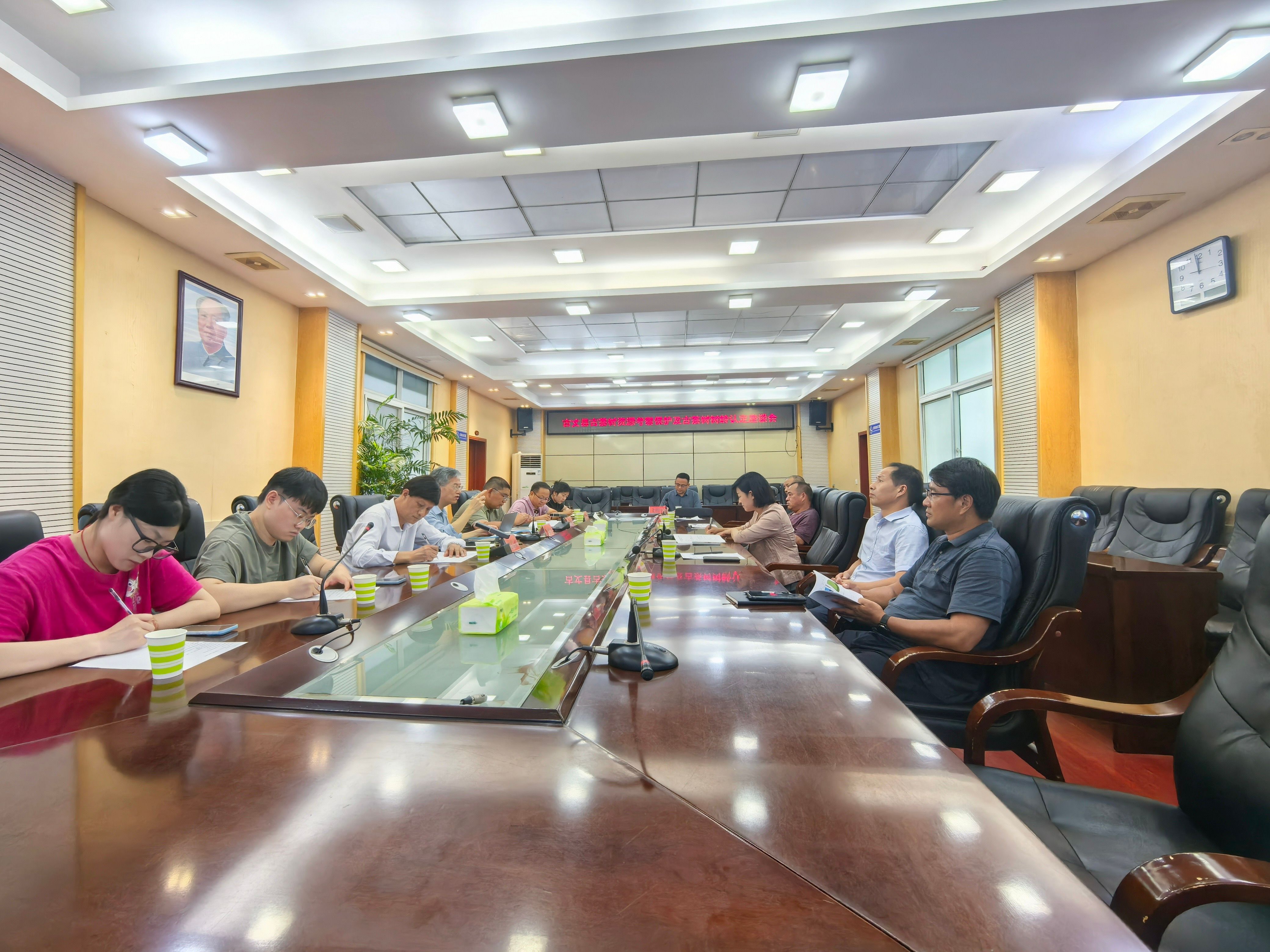工作开展期间,研究中心两人会同湖南农大茶学系教授沈程文、湘西州茶科所所长彭云沿酉水河而下来到鑫康古树茶基地,进行古茶树种质资源收集和保护,完成三株典型古茶树的实地测量、拍照及在“中国古茶树大数据平台”的上传工作;走访调研湘西鑫康古树茶业有限公司、古丈县毛尖群体古树茶苗圃基地、古丈县茶文化博物馆等地;与宋晓波副县长进行深入交流座谈,对古丈毛尖宝贵的茶树种质资源给予充分肯定,并针对古茶树资源普查、古茶树分类分级管护、古茶树种质资源保护及扩繁、“三茶融合”及产业发展等工作提出了建设性的指导意见。
