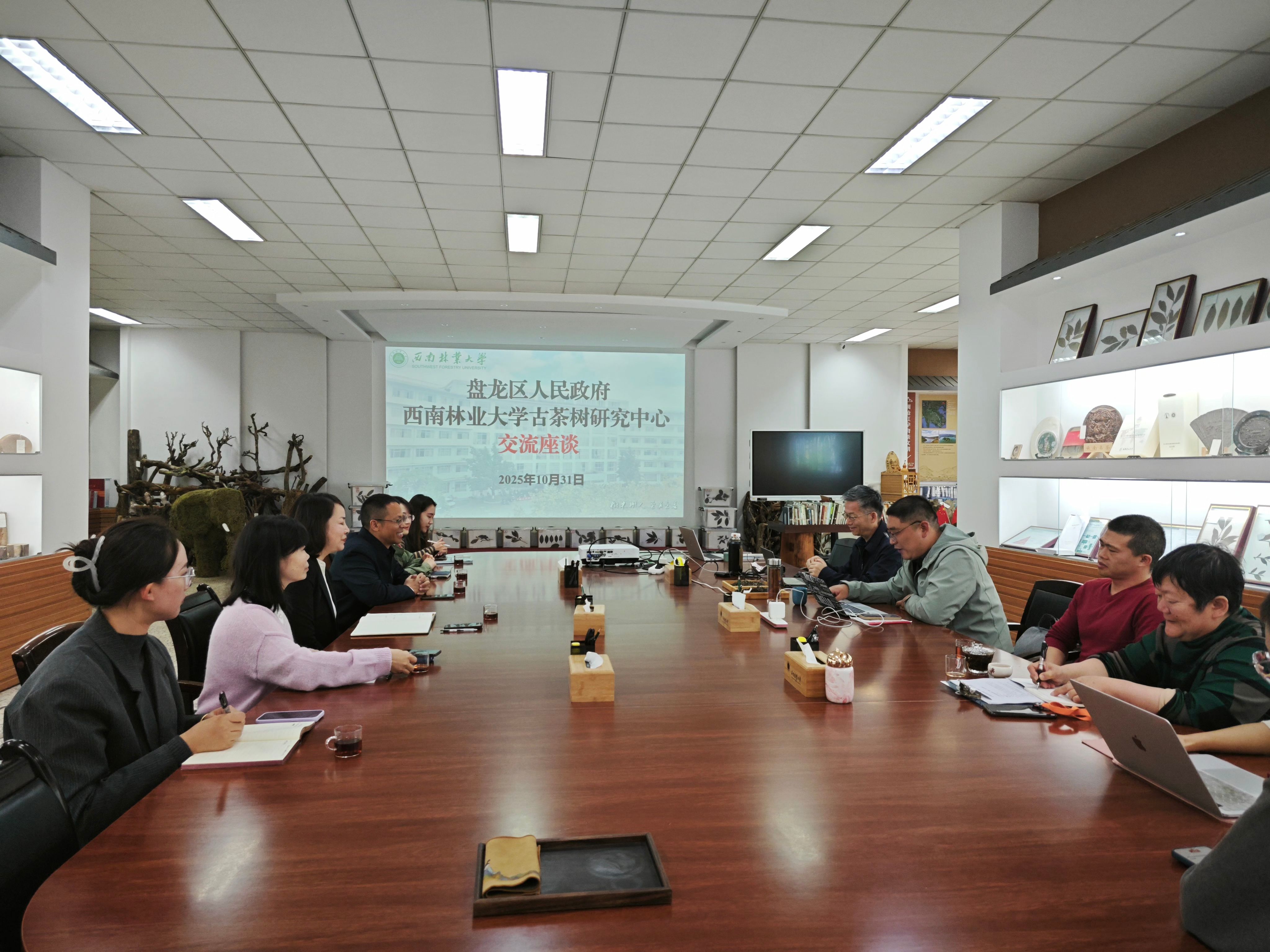 10月31日,昆明市盘龙区人民政府区委常委、区委办主任陈加林,副区长蒋晓庆一行莅临122cc太阳成集团古茶树研究中心,进行实地考察与交流座谈,古茶树研究团队师生参加。