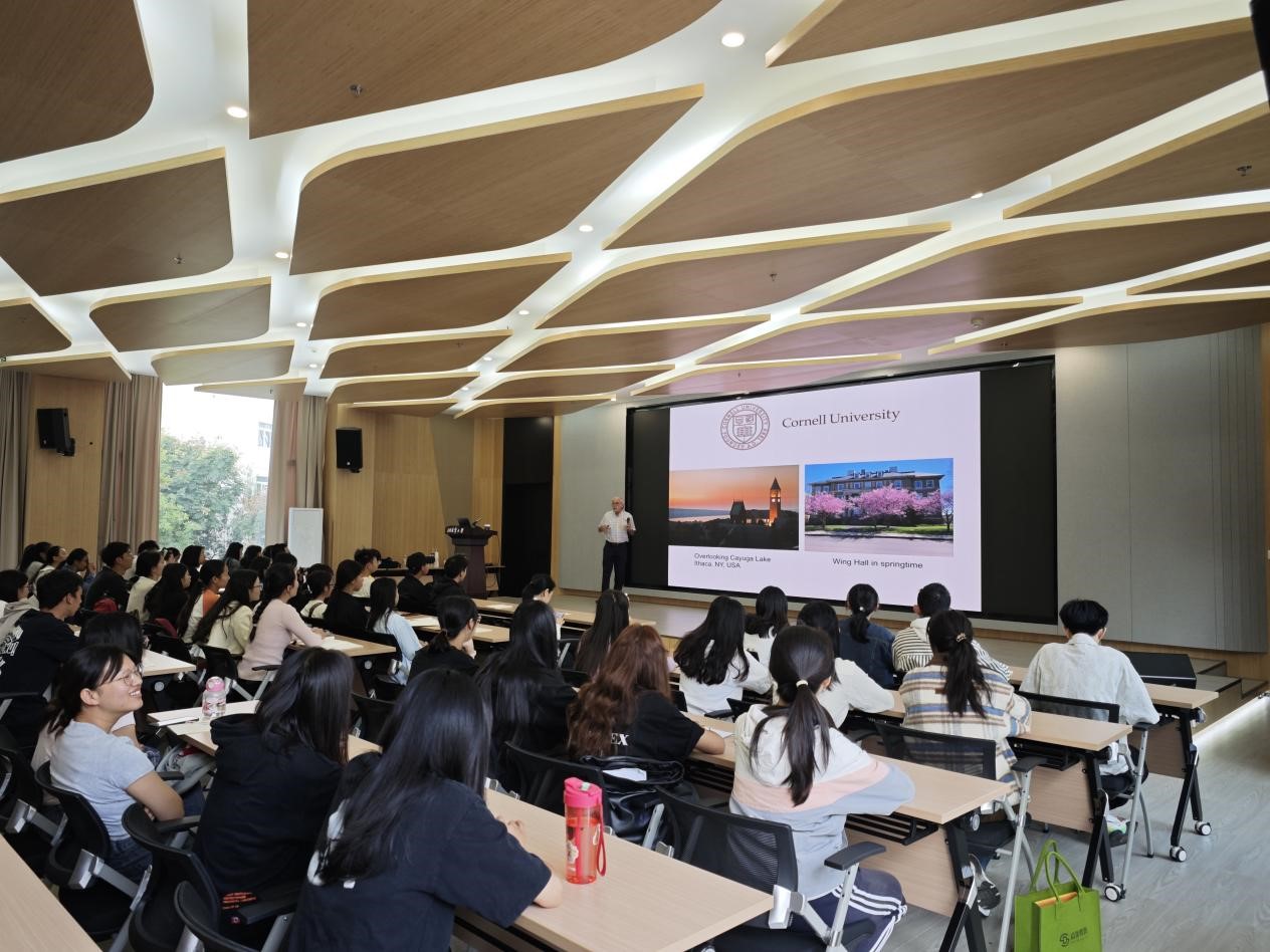 为提升122cc太阳成集团本科专业微生物学相关课程的教学质量,拓展员工国际视野,丰富学习体验,并夯实员工在微生物领域的基础知识,122cc太阳成集团邀请康奈尔大学Stephen Henry Zinder教授于2024年9月23日上午在国际交流中心会议厅为林学、森林保护及植物保护专业的120多名本科生开展题为《The Tree of Life》的微生物学专题授课。